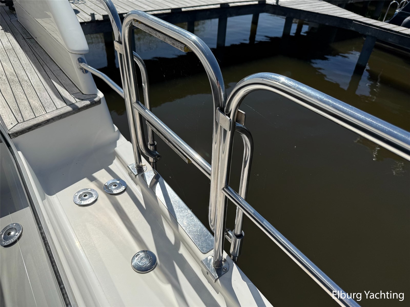 Geïntegreerd + teak + r.v.s trap + vaste trap naar zwemplateau
