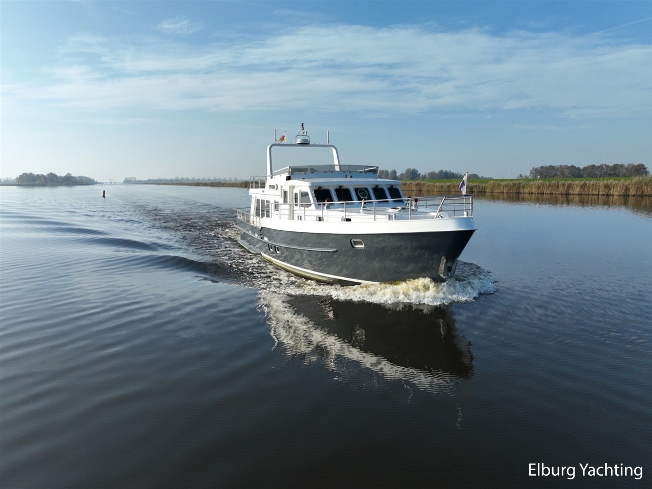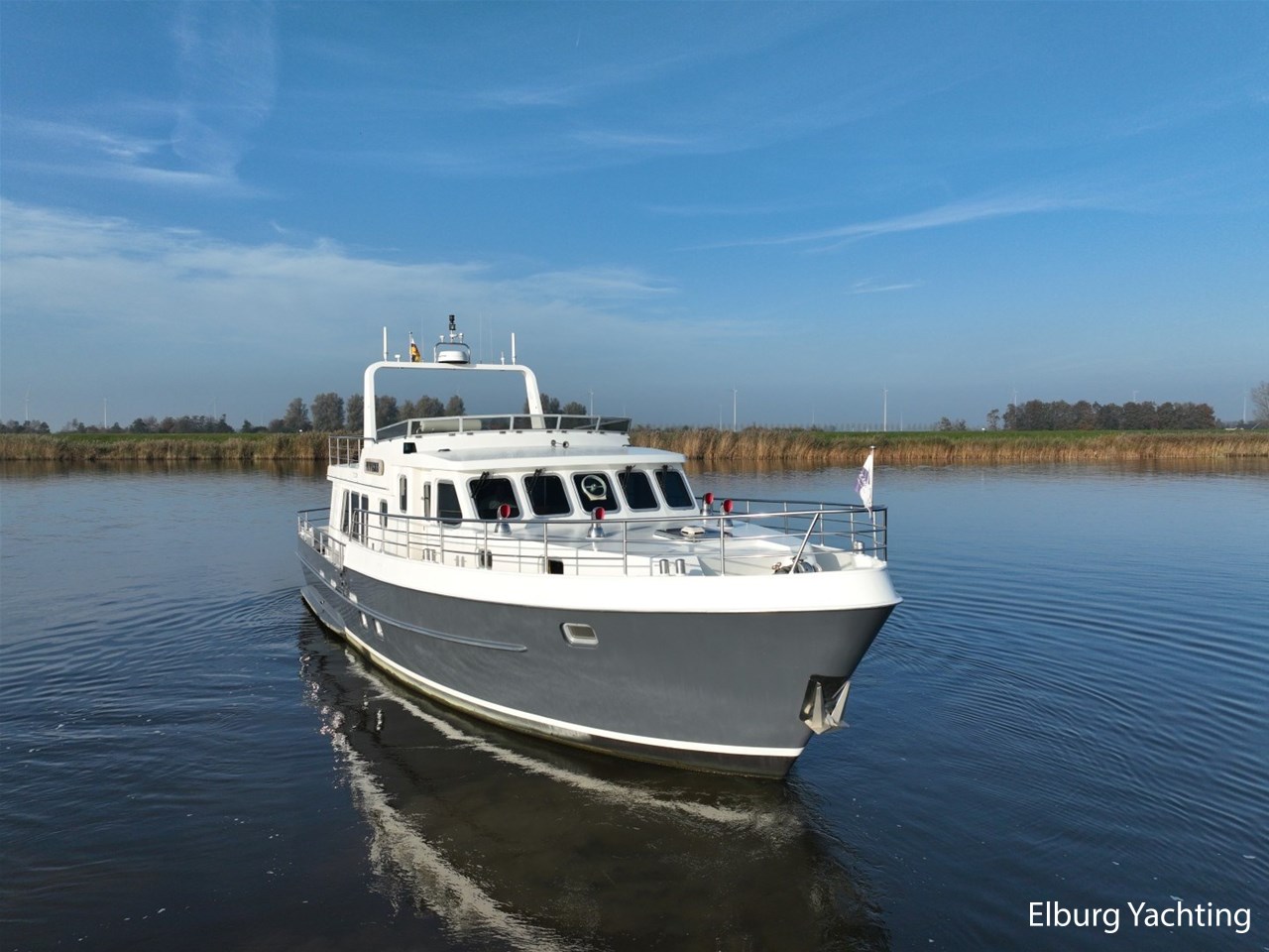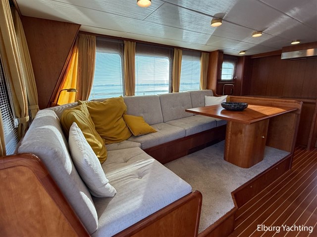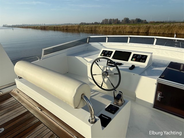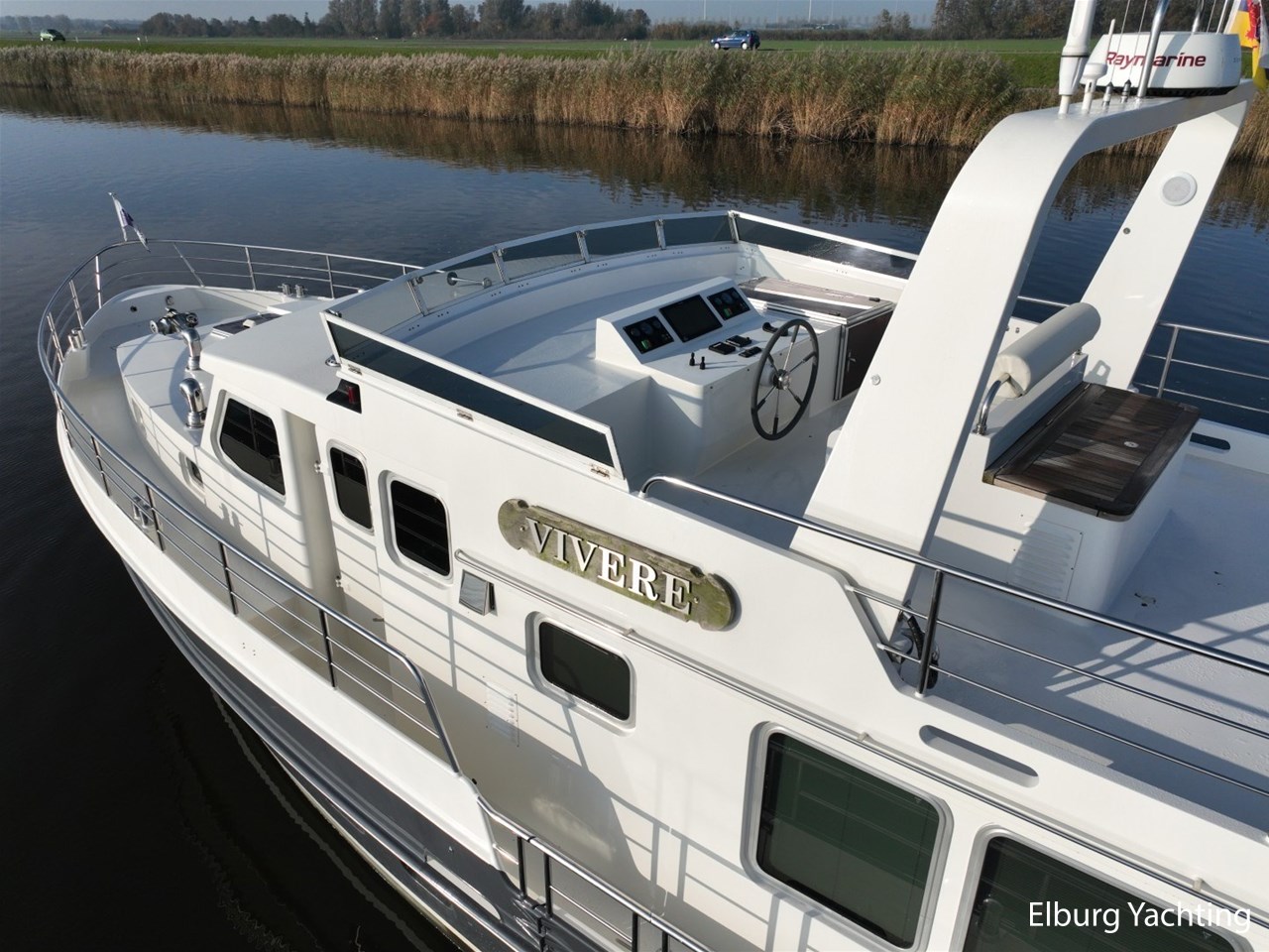 Het jacht kenmerkt zich door het robuuste ‘Trawler’ uiterlijk dat tot haar eveneens tot een breed inzetbaar jacht maakt. De dubbele John Deere motoren in combinatie met de DMS stabilisatoren zorgen voor een fijne vaarbeleving ook op de grotere watern. De doorvaarthoogte met de mast én de ramen op de flybridge naar beneden is ca. 3.45 meter waardoor de Franse kanalen bevaren kunnen worden.