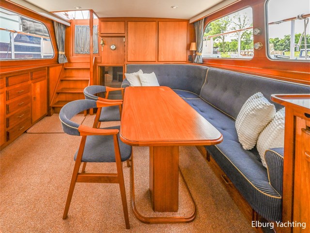 Deze mooie Super van Craft 14.70 is een tijdloze klassieker met een mooie teakhouten opbouw. Het ruime achterdek met vaste bank en stuurstand op hetzelfde niveau zorgt ervoor dat schipper en gasten altijd bij elkaar zitten. Verder beschikt het schip over o.a: boegschroef en twee motoren waardoor het schip eenvoudig te manoevreren is, draaibare davits, tent over stuurstand welke afsluitbaar is, het schip is France Proof. 2 x vaste vaarstoel bij stuurstand, vrijstaand bed in eigenaarshut, gastenhut met eigen toilet, afdekhoes voor zit op achterdek, 2 x zij uitstap in reling, rondspant onderwaterschip, teak houten gelakte zeerailing, ruime zit in de salon met bergruimte onder de banken, separate douche en toilet in eigenaarshut, witte eigenaarshut met plaats voor een queensize bed, wasmachine.