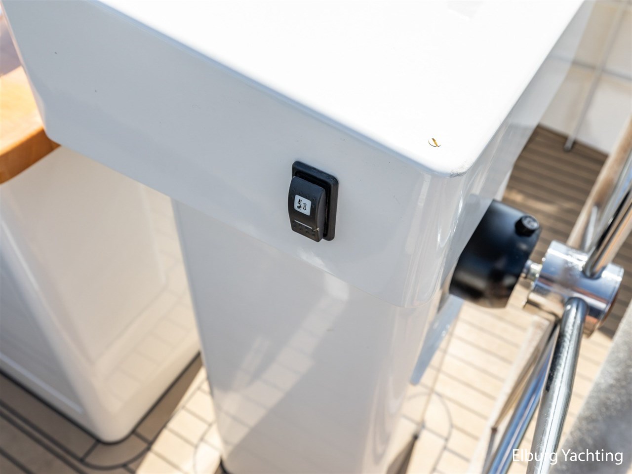 Elektrisch neerklapbare achterplecht met geïntegreerde zwemtrap,