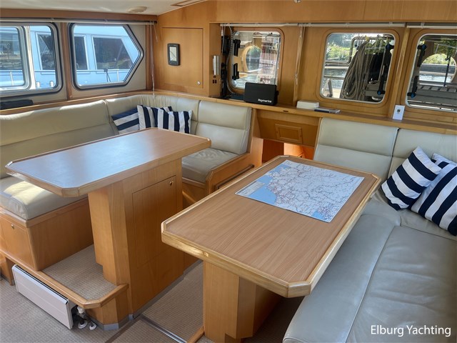 Deze unieke Pilot 42 wordt aangeboden door haar eerste eigenaar. De eigenaar heeft zorg gedragen voor de staat van het schip door haar door de jaren heen continu te verbeteren en te onderhouden. Het schip kenmerkt zich door haar unieke indeling waarbij men buiten en binnen kan sturen. Via de salon loop je via de zijdeur het gangboord in om eenvoudig aan te leggen. Het achterschip is ruim opgezet met veel zit en opbergmogelijkheden. Het achterdek is volledig overdekt door een aluminium vast dak wat demontabel is. De hut achterin heeft een eigen ingang + eigen sanitair. Met haar 2 x 260 pk heeft het schip een groot bereik waarbij ze zowel langzaam als snelvarend goed tot haar recht komt. Eenmaal aangekomen maakt de afstandsbediening van Yachtcontrol het aanmeren eenvoudig. Deze Pilot wordt verder geleverd met o.a: romp geschilderd 2020, onderwaterschip gestraald en opnieuw opgebouwd in 2020, dek geschilderd 2023, Raymarine plotter 2023, Raymarine Ray marifoon 2023, nieuwe schroeven 2022, Munters MG luchtontvochtiger met hygrostaat welke het gehele schip van droge lucht voorziet, dubbele r.v.s. reling, dubbele r.v.s. bolders, bimini over stuurstand, r.v.s. fenderhouders, r.v.s handrails, klapbare radarmast, zeewaardig beschutte kuip, Tack Ticks windset, 1000 Watt zoeklicht, manueel te installeren loopplank, geïsoleerde romp, lamellen, trimflappen.