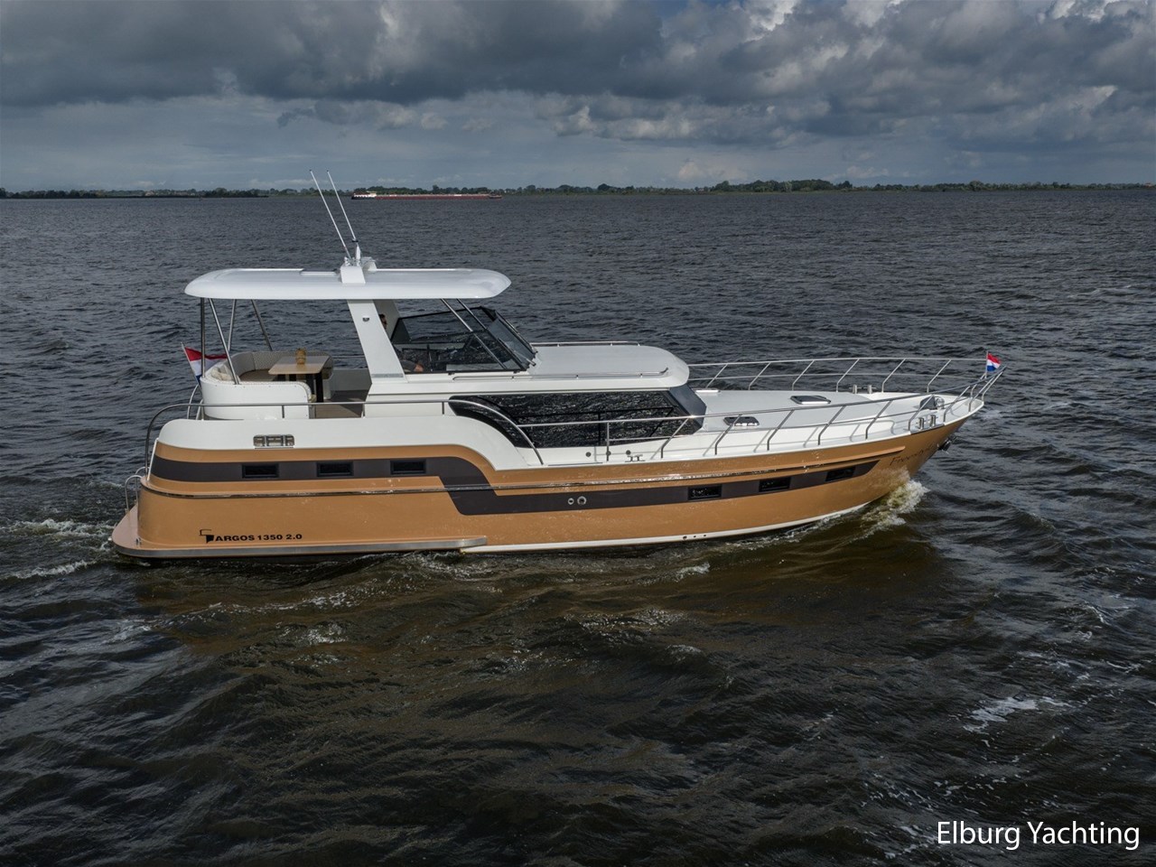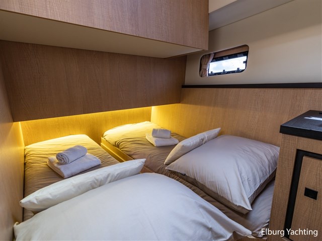 Prachtige, moderne Argos Line 13.50 - 2.0 aangeboden door haar eerste Nederlandse eigenaar. Dit prachtige exemplaar is gebouwd door de Argos Jachtwerf te Sneek en is getekend door Vripack design eveneens uit Sneek. Tijdens het bouwproces is er met veel zaken rekening gehouden, het jacht moest modern worden met een praktische indeling (waaronder drie volwaardige hutten en diverse comfortabele zitplaatsen). Tevens moest het jacht geschikt zijn voor een langer verblijf aan boord, hierdoor is er dubbelglas geplaatst met een fijne centrale verwarming. Tevens was het van belang dat het jacht een warme uitstraling kreeg, zo heeft ze de prachtige tweekleurige romp gekregen in combinatie met een uiterst modern interieur waarbij gebruikgemaakt is van uitsluitend kwaliteitsmaterialen. Het jacht is voorzien van een 'zwevende hardtop' over het achterdek waar men heerlijk uit de zon kan zitten. De salon is voorzien van twee fraaie zitgelegenheden met een praktische open keuken. Voorin zijn twee slaapgelegenheden gesitueerd met sanitair en in het achterschip is de eigenaarshut gesitueerd met eigen sanitaire ruimte.