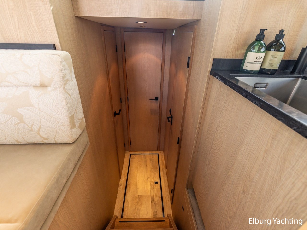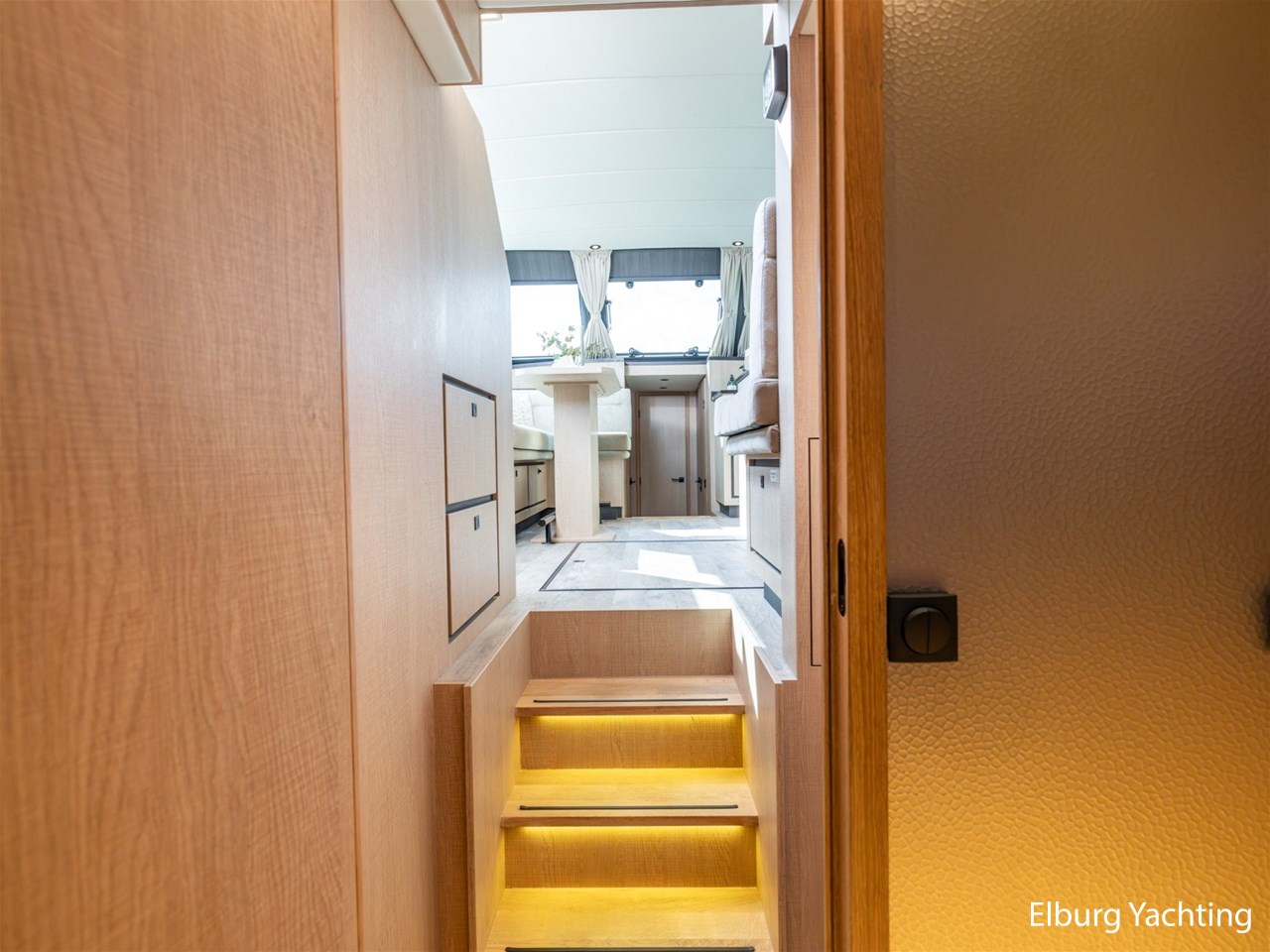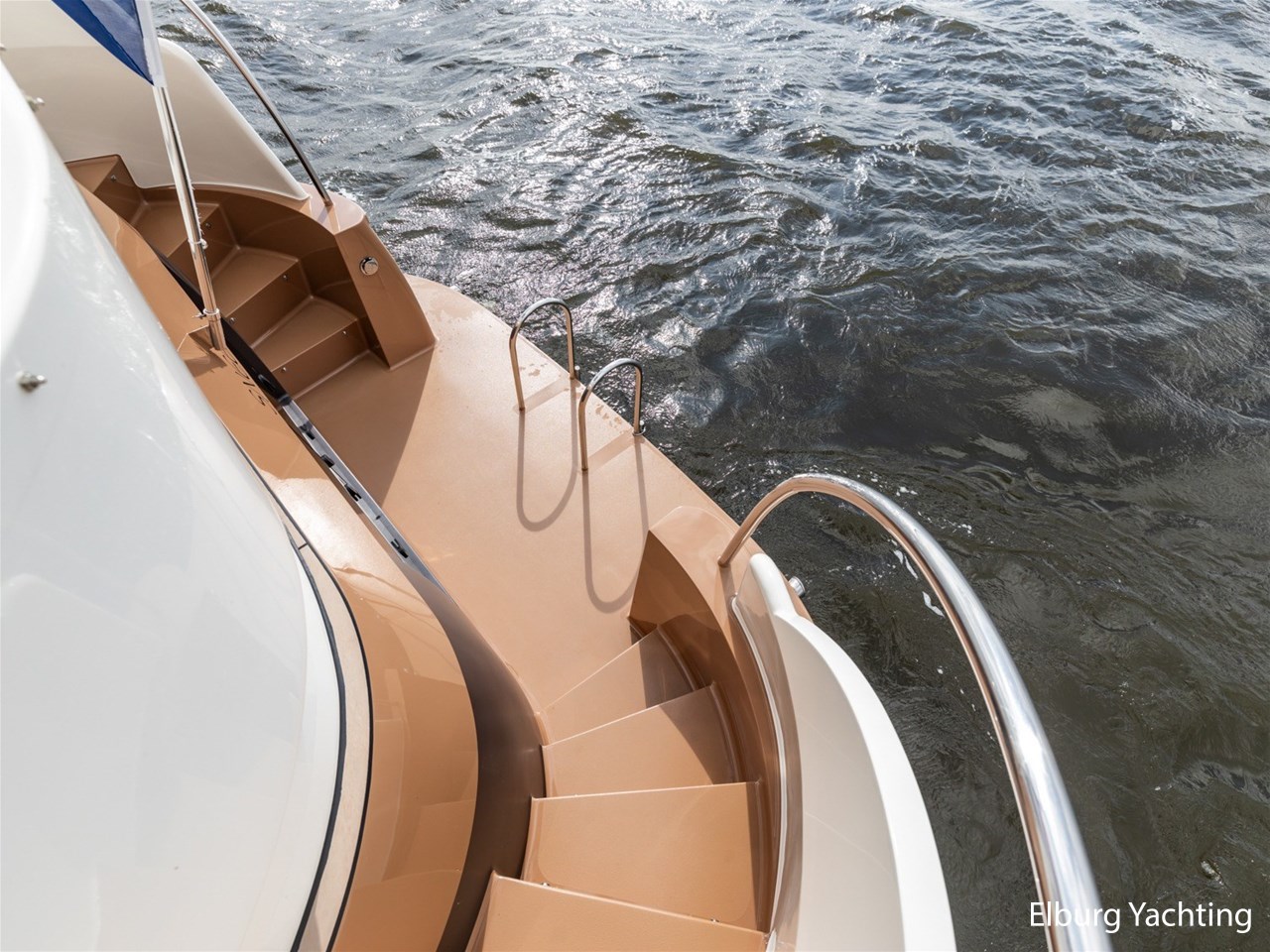 - Geïntegreerd in casco, met draaitrappen naar achterdek