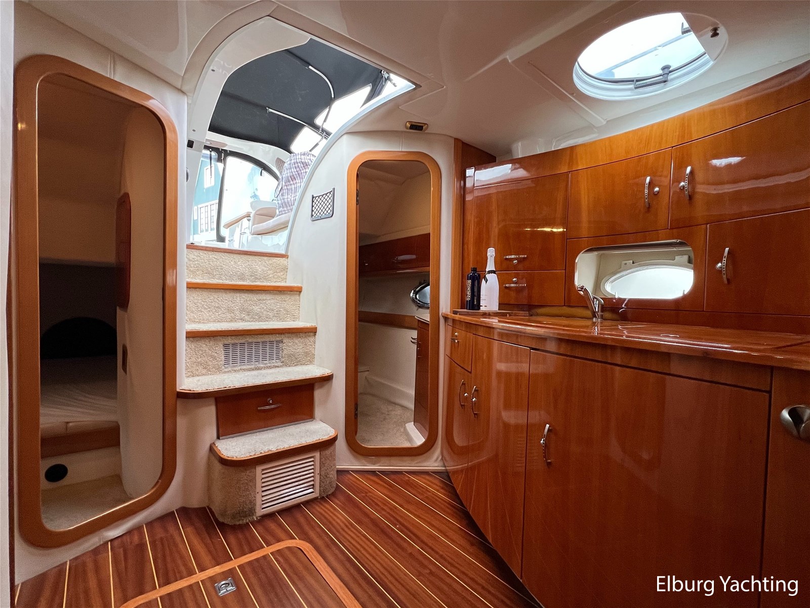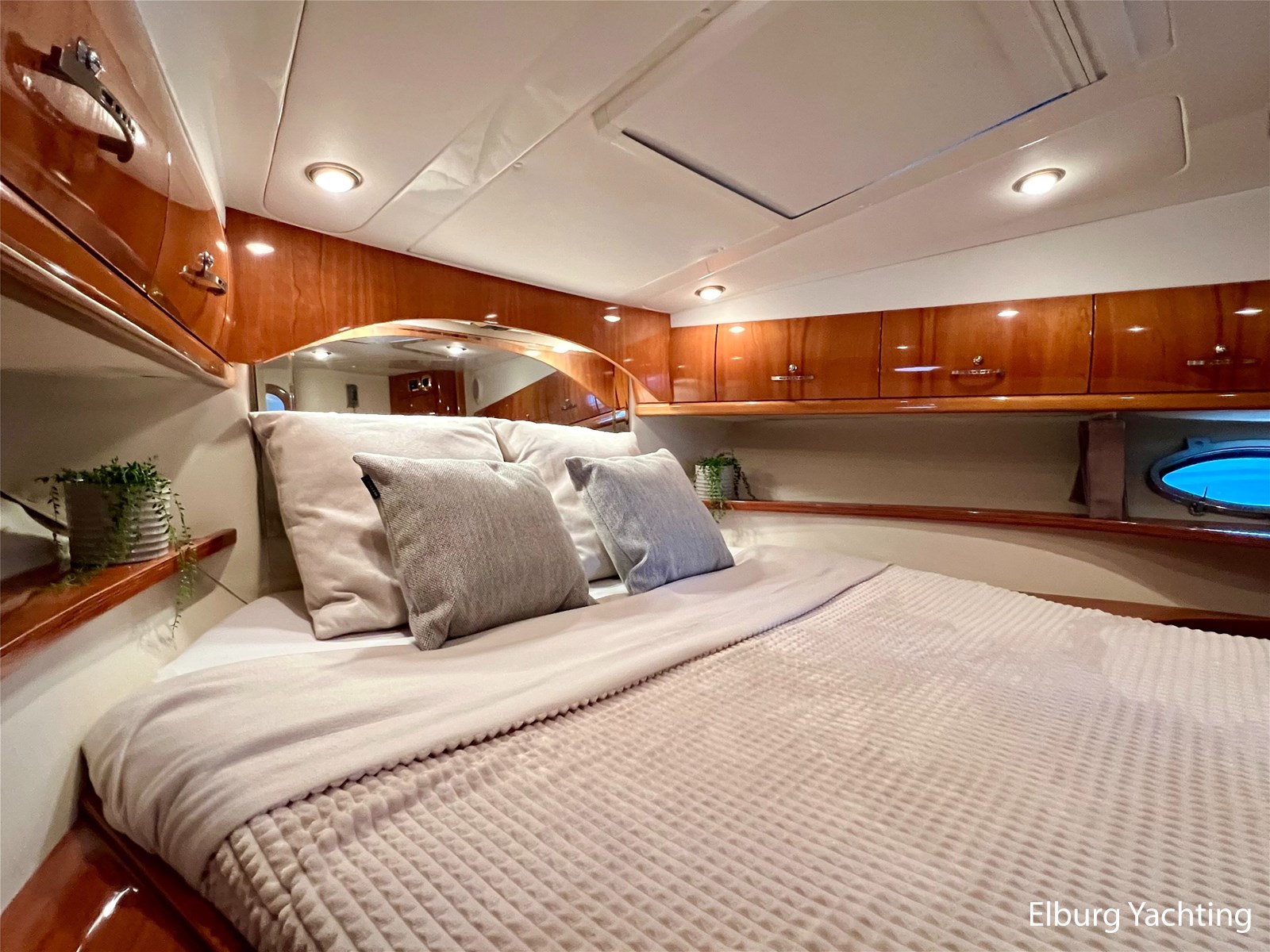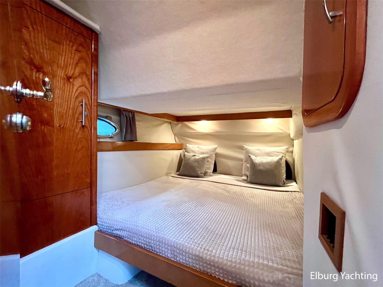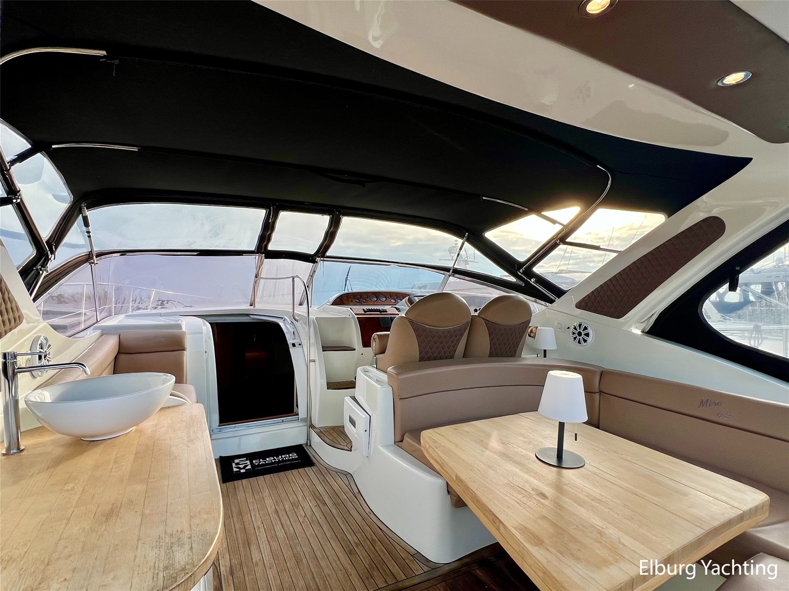 Italiaans design in combinatie met veel praktische ruimte kenmerkt deze Mira 43 van de werf Innovazione e Progetti uit Italie. Dit jacht is van bouwjaar 2004 en is voorzien van twee krachtige Volvo Penta D6 motoren met elk 350 pk. De aandrijving verloopt via twee Volvo Penta DPH hekdrives, welke in 2025 zijn geserviced. Deze Mira 43 is voorzien van: Volledige tent rondom kuip met uitristbare delen, hydraulisch uitschuifbare gangway met afstandsbediening, groot bergluik in zwemplateau, kuip voorzien van koelkast / spoelkom / radio met speakers, loop naar het voordek via gangboorden maar ook binnendoor via opstap bij stuurstand, afneembaar zonnebed op het voordek, elektrisch/hydraulisch bedienbaar luik naar machinekamer, diverse 230V aansluitpunten door de boot, TV in salon (2025), tapijt delen in het interieur uitneembaar, 2 x bergluik in salonvloer. Verfsysteem onderwaterschip vernieuwd in juli 2025. Dit schip is op afspraak in Nederland te bezichtigen. Wij maken graag met u een afspraak voor een vrijblijvend bezoek aan boord.